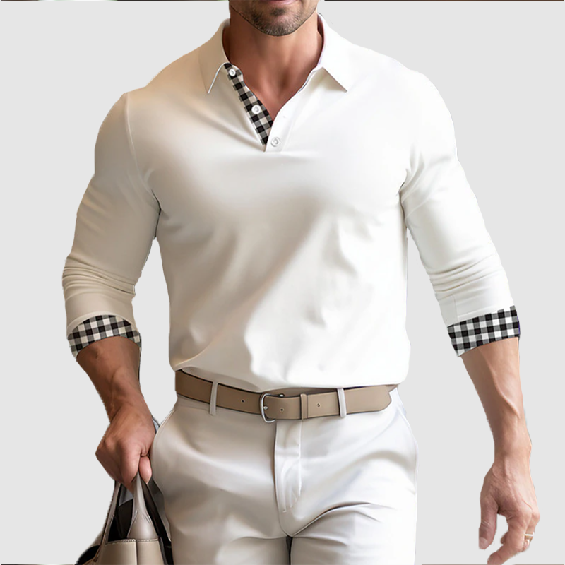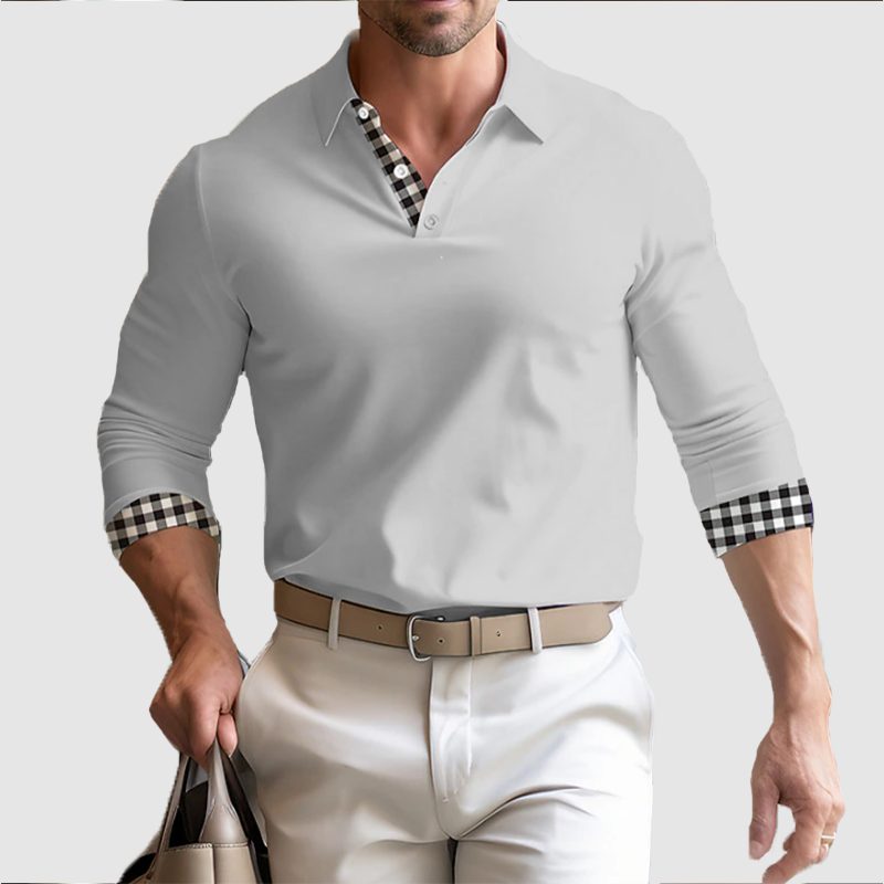 Men's fall long sleeve men's lapel loose plaid POLO top